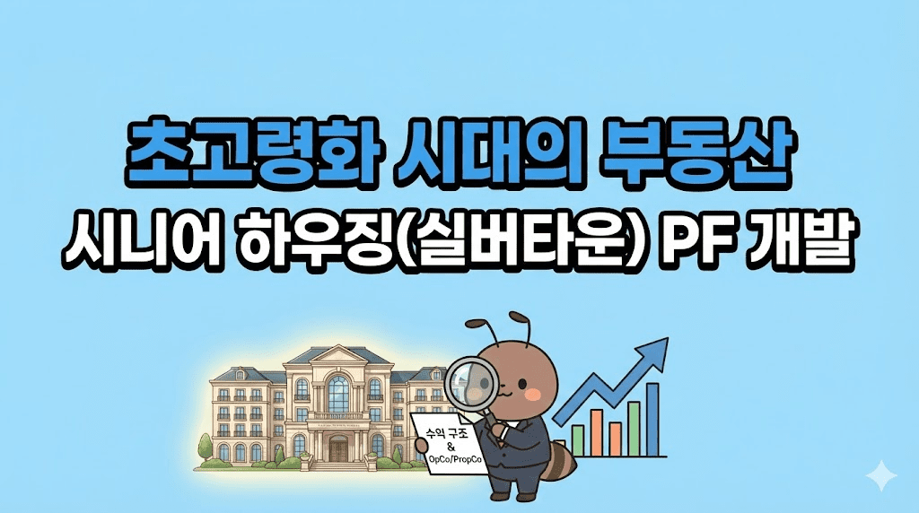 핵심 키워드: 시니어하우징, 실버타운, 부동산개발, PF, OpCo, PropCo, 수지분석, 캡레이트, 고령화, 헬스케어리츠 1. Executive Summary: ‘아파트 타짜’들의 다음 사냥터 2026년 대한민국 거시경제에서 가장 확실하게 예정된 미래는 ‘초고령화(Super-aging)’입니다. 베이비부머 세대가 후기 고령자로 진입하면서, 구매력을 갖춘 액티브 시니어(Active Senior)들을 위한 하이엔드 주거 시설의 수요는 폭발적으로 증가하고 있습니다. 반면, 디벨로퍼와 자산운용사들이 처한 현실은 냉혹합니다. 오피스는 캡레이트(Cap Rate)가 너무 … 더 읽기